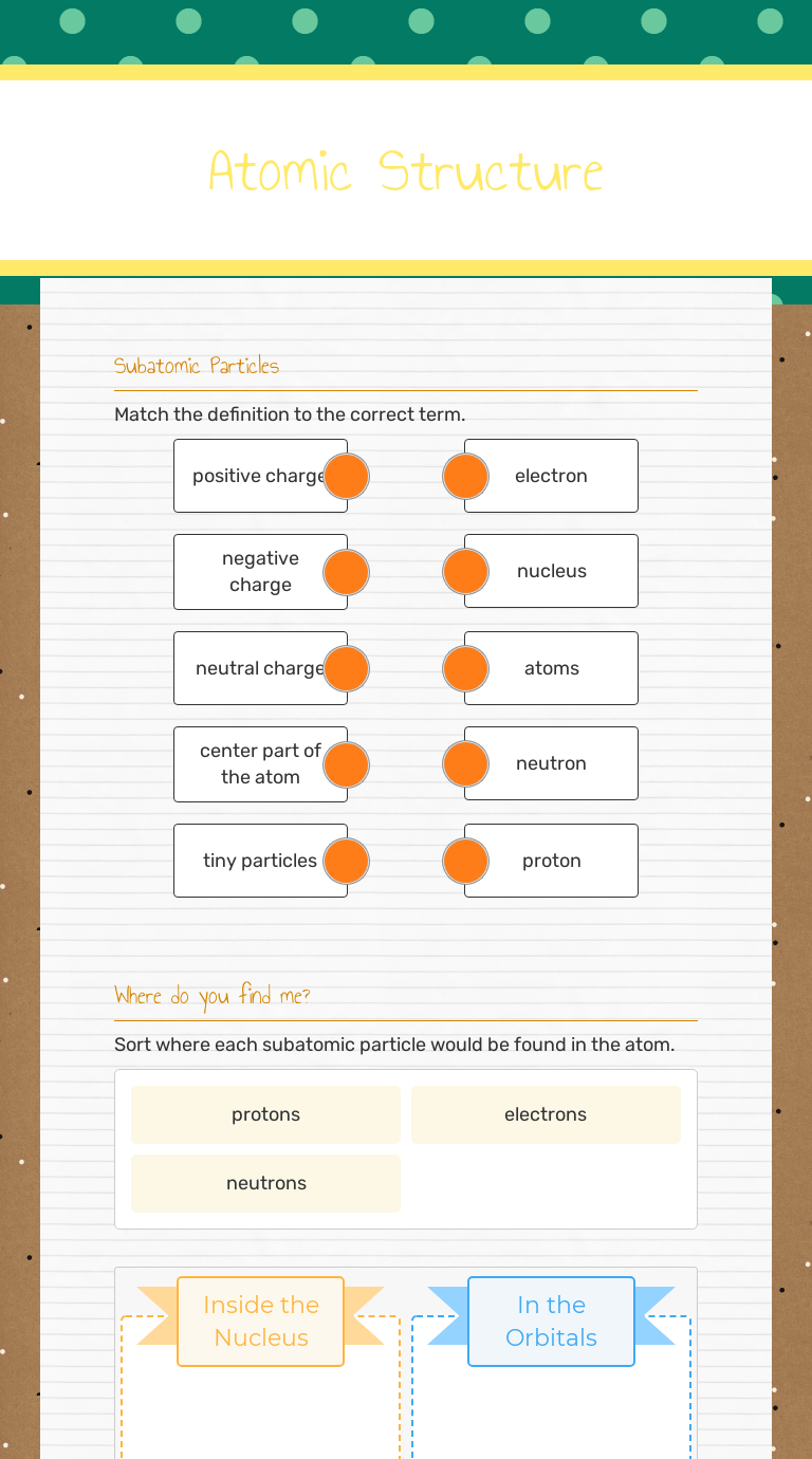 # of protons = atomic number. Please check your answers and forward . In this worksheet, students will learn about protons, neutrons and electrons,. Particles, key concepts in chemistry, particles and atomic structure. Electrons in the correct orbitals and to fill out the key for the subatomic particles. Complete the table for the subatomic particles that made up an atom. The given materials are colored blue. Study the drawings and answer the questions at the bottom of the page. Atoms and their parts (subatomic particles). Science 10анаanswer keyанаions and subatomic particles.notebook. An atom of o that has 4 more subatomic particles than 13c. The answers are highlighted in yellow boxes. Fill in the blanks with the correct answers for the following: